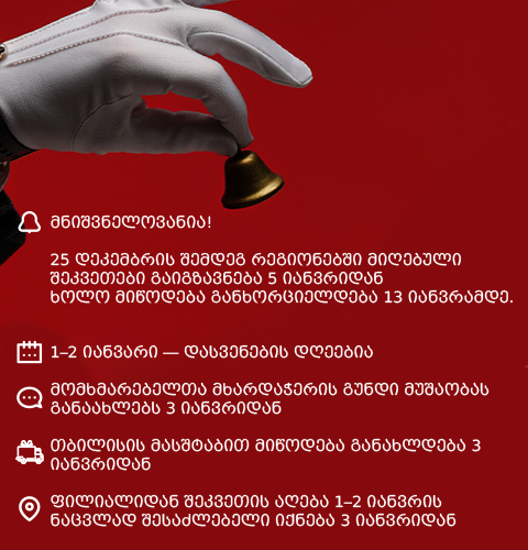 „ვებ გვერდი იყენებს „მზა ჩანაწერებს“ დამატებითი ინფორმაციის მისაღებად იხილეთ: „Cookie პოლიტიკა“